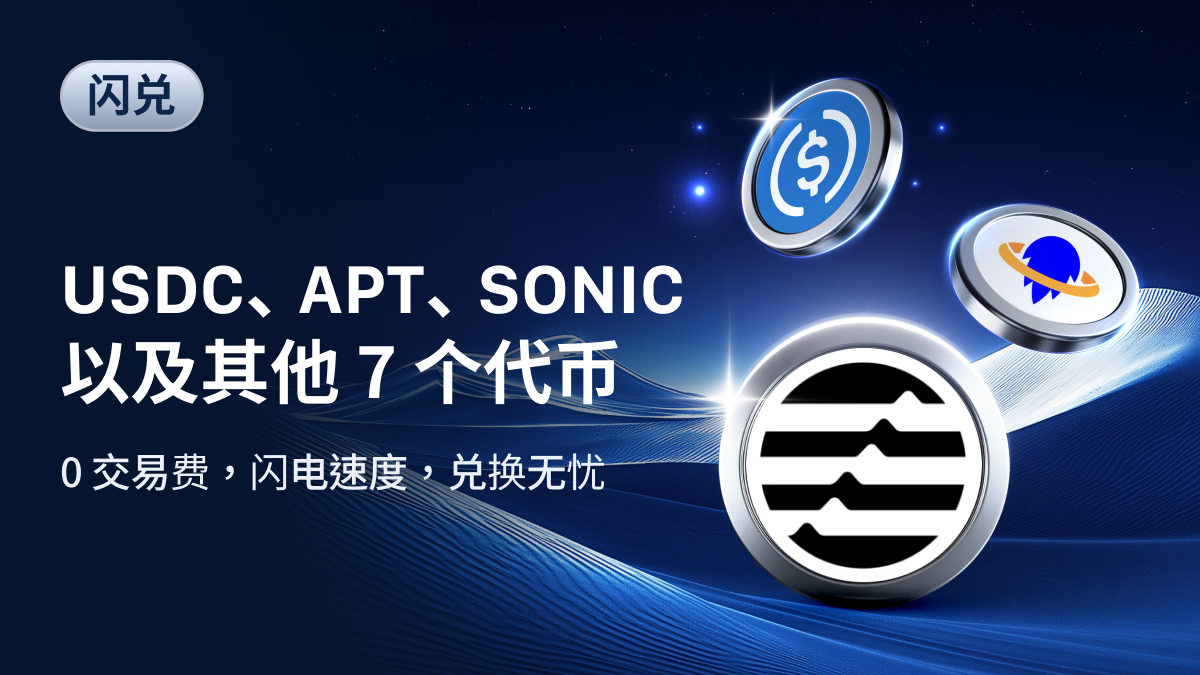 我们很高兴地宣布,USDC、APT、SONIC以及其他 7 个代币将于 2024年1月9日18:00(UTC+8)上线MEXC Convert!