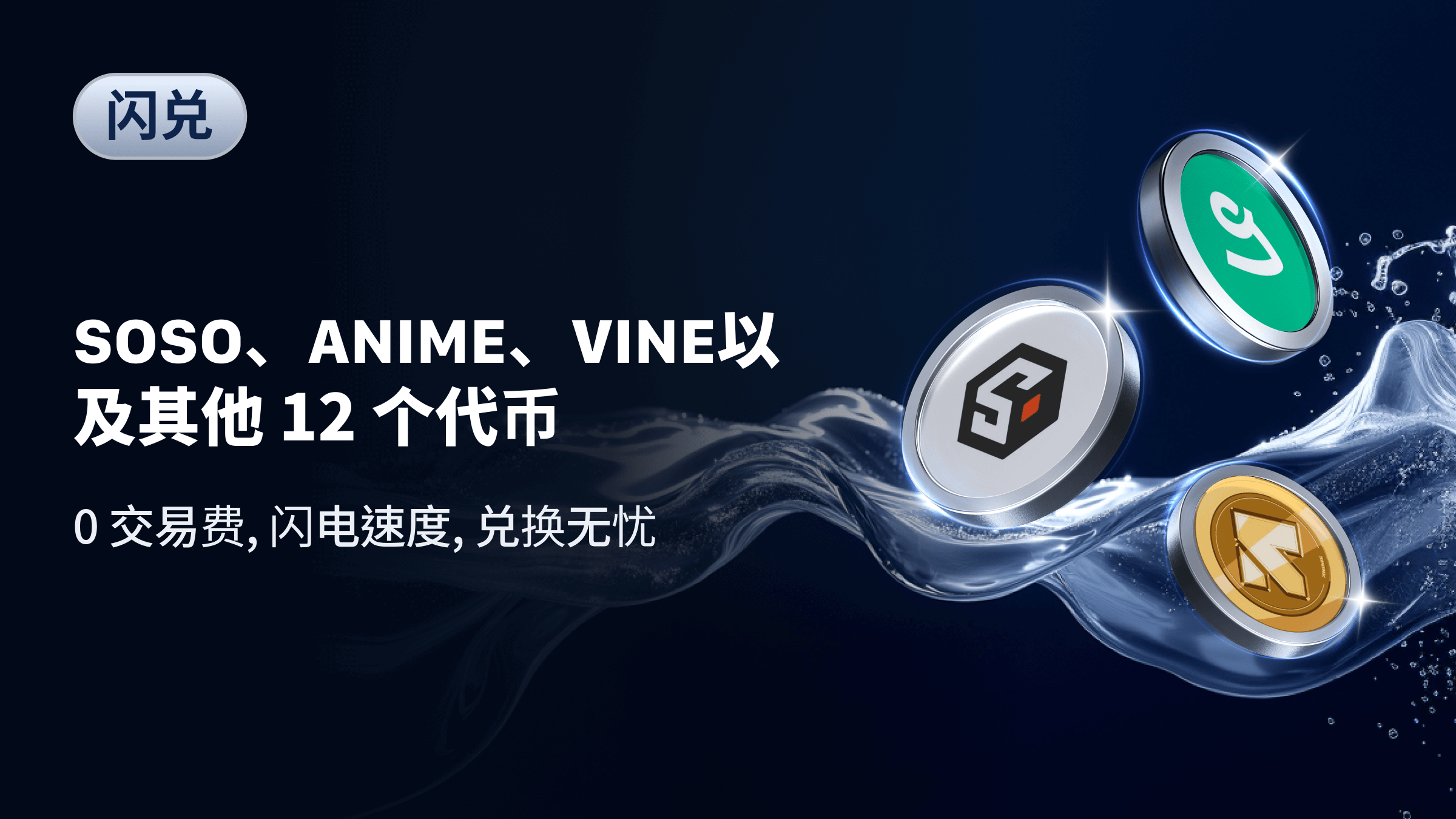 我们很高兴地宣布,SOSO、ANIME、VINE以及其他 12 个代币将于 2024年1月27日18:00(UTC+8)上线MEXC Convert!
