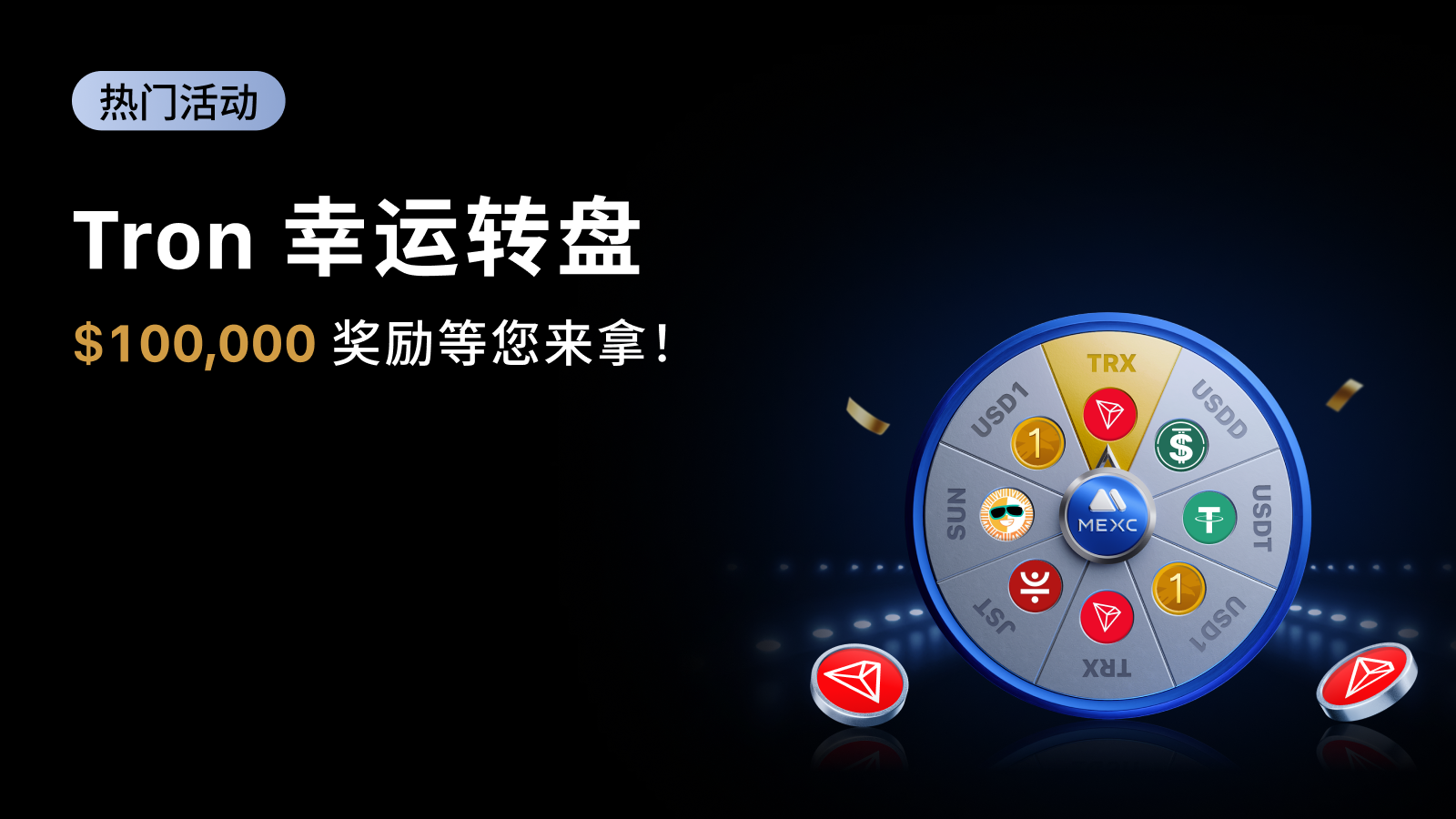 加密货币爱好者请注意!MEXC 携手 Tron 推出盛大 Tron 幸运转盘活动,您要来参加吗?总计 $100,000 奖励等您来拿,助您财富加速增长!