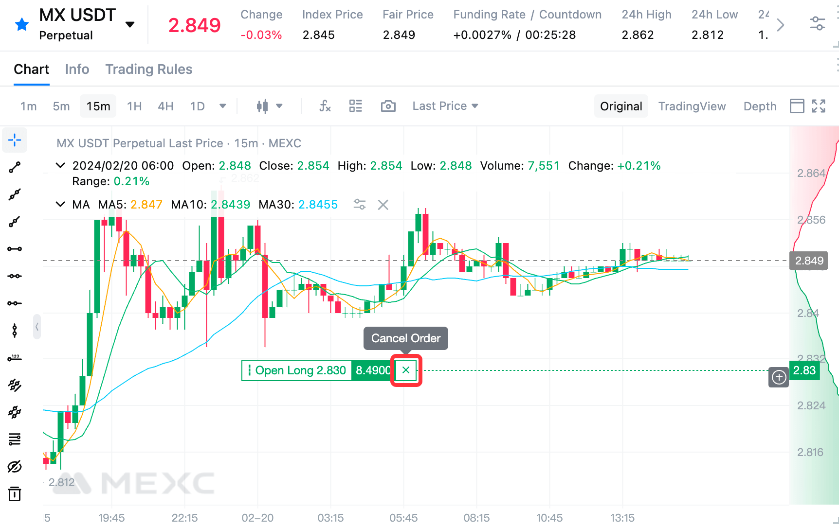 在 MEXC 平台,现货下单分成限价、市价、止盈止损、选择性委托(OCO)四种模式。1. 限价限价是指允许用户自行设定委托价格,订单会按照委托价格或者比委托价更优的价格成交。提交限价单时,如果当前委托列表中已经有满足用户自行设定委托价格的订单,限价单会马上按照最优的价格成交。如果没有,限价订单会在委托列表中等待,直到最终成交或者用户自己撤单。我们用 MX 来举例说明:现在账户中有 10 个 MX
