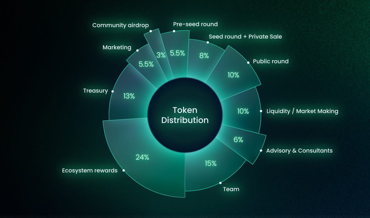 BDXN 的代币分配经过精心设计,旨在平衡各方利益,推动平台长期发展。具体分配如下: