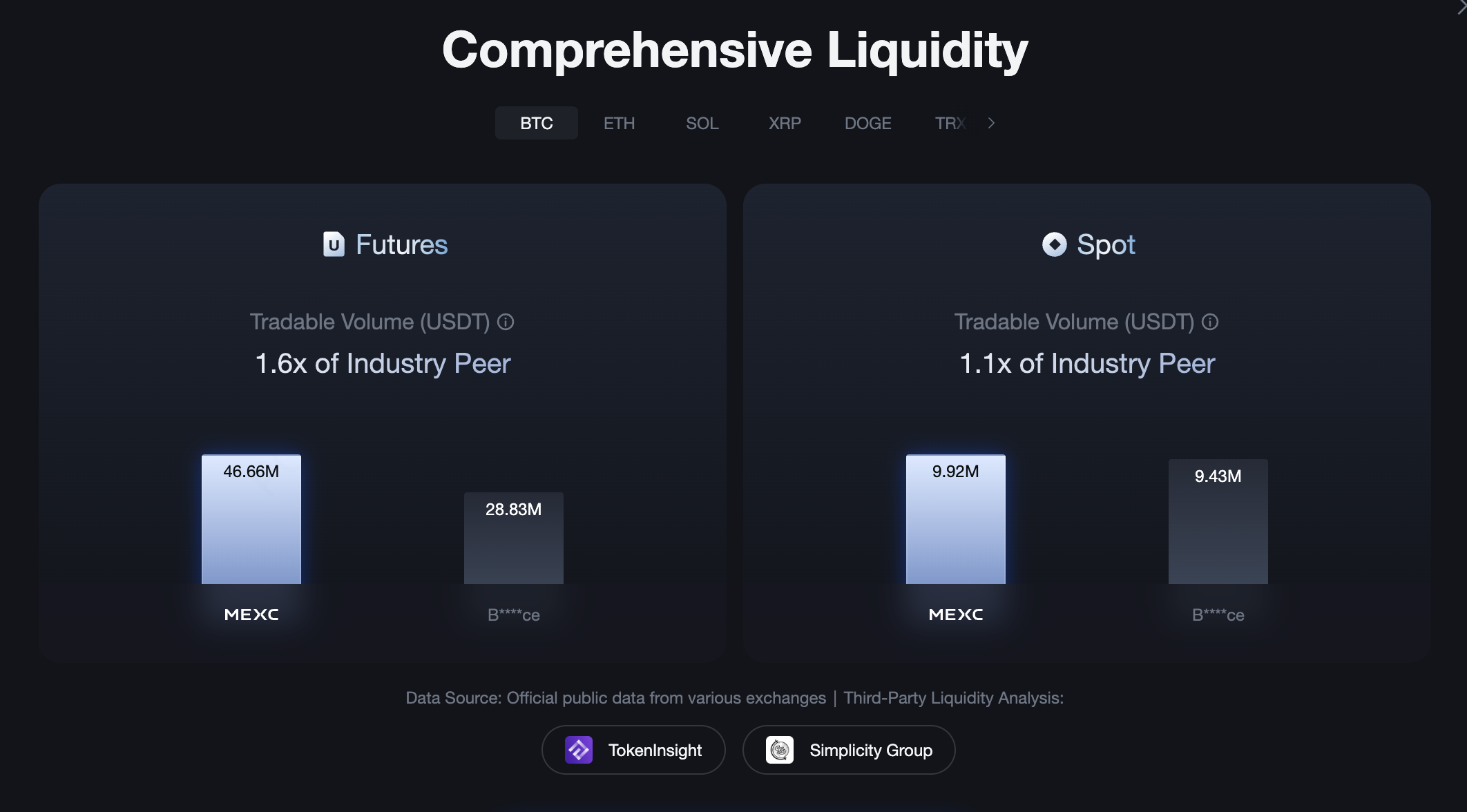 极速撮合引擎 | MEXC 交易引擎每秒可处理百万级订单,确保高频交易顺畅。 |