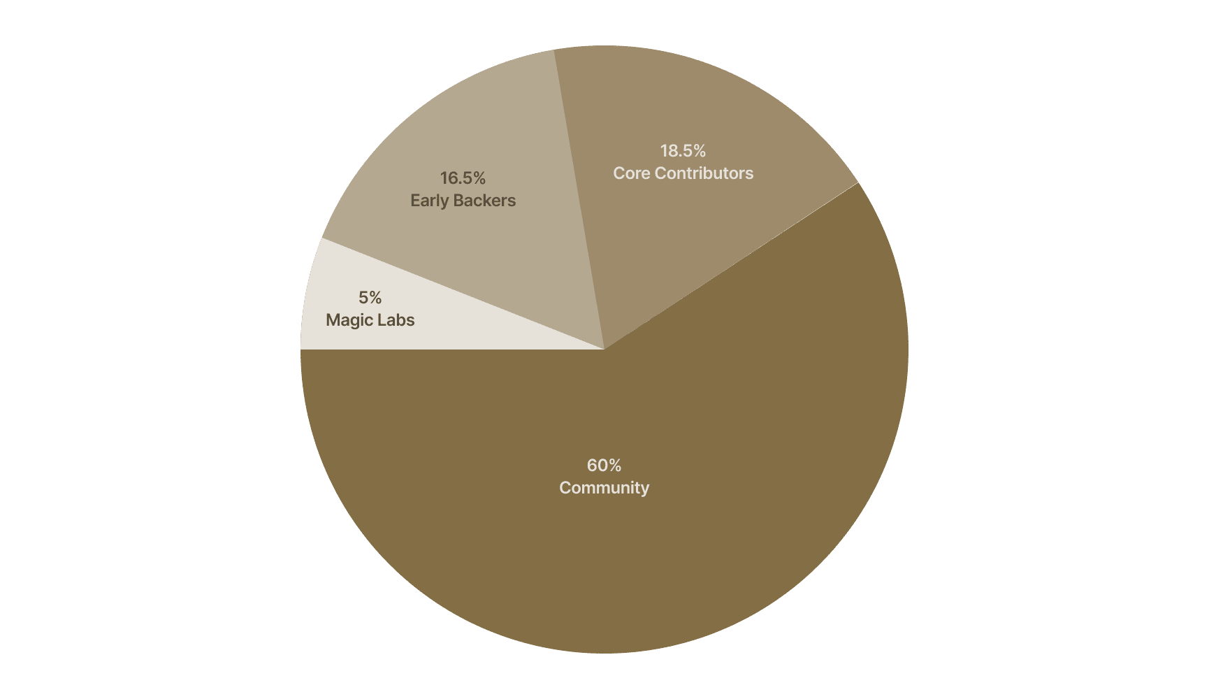NEWT 代币的初始分配计划,旨在协调核心贡献者、早期支持者以及更广泛的 Newton 协议社区之间的激励机制,同时保障整个生态系统的长期可持续发展,其中 60% 分配给社区,18.5% 分配给核心贡献者,16.5% 分配给早期投资者,5% 则分配给 Magic Labs。