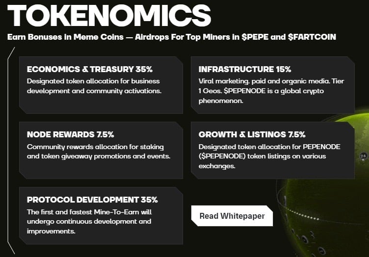 他们还计划添加其他迷因币作为奖励。想象一下,通过您的虚拟挖矿设置赚取 PEPE 或 Fartcoin,而不仅仅是 $PEPENODE 代币。这也可能吸引那些社区的人。