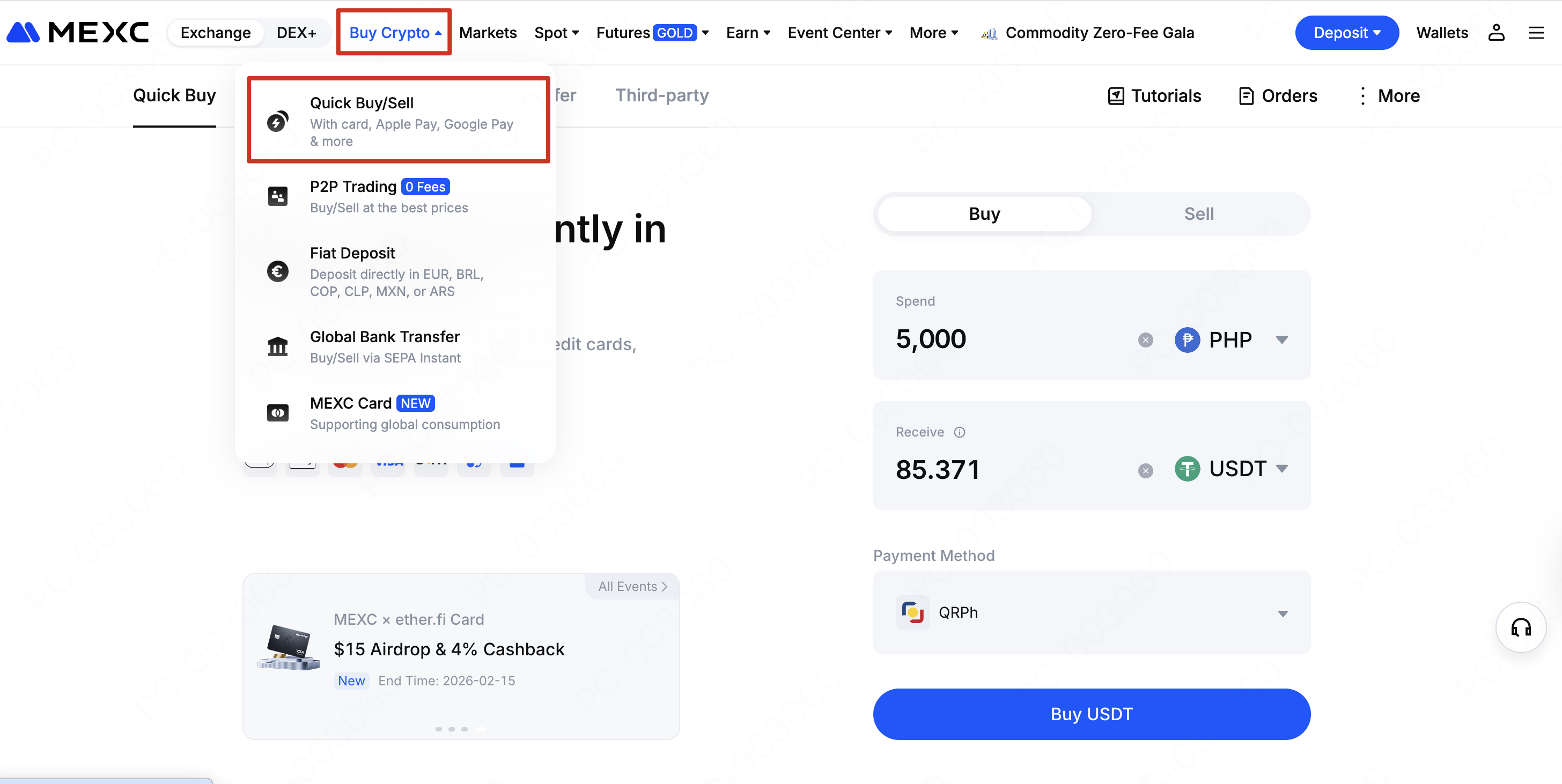 This guide walks you through how to purchase crypto using Philippine peso (PHP) on MEXC via QRPh.