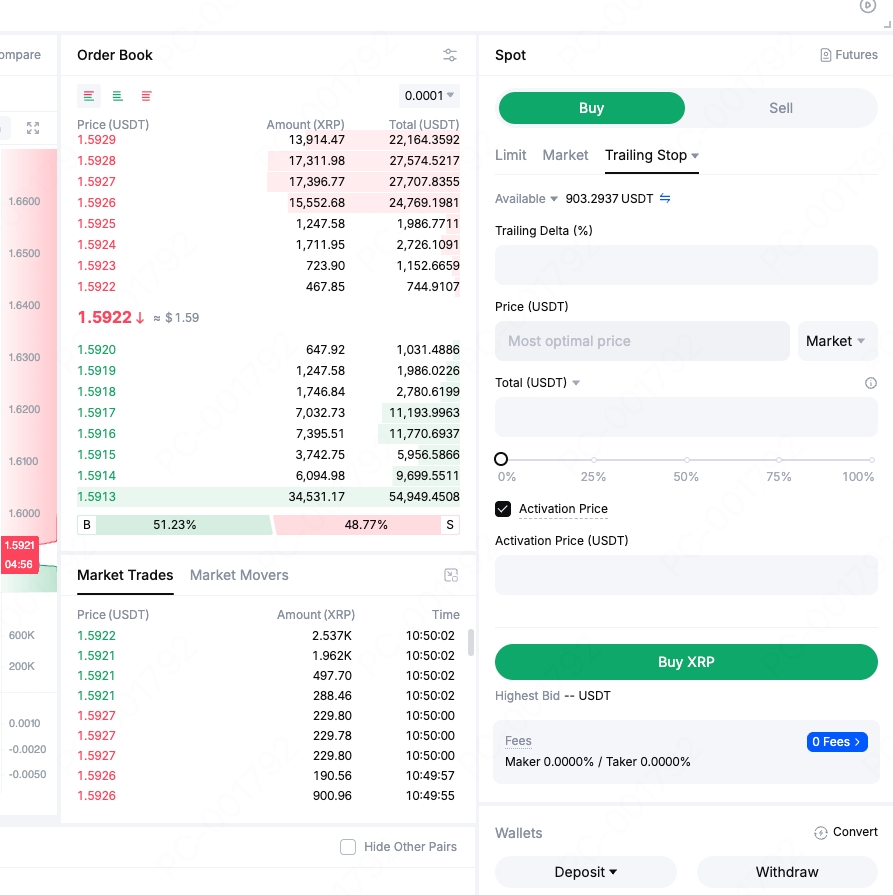 简单理解:如果您设置 5% 的跟踪幅度,系统会持续跟踪市场最低价(买入)或最高价(卖出),当价格反转达到 5% 时自动触发订单。