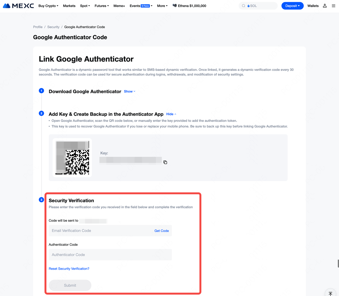 - 如果您的谷歌验证器上绑定了多个帐号的验证码,请确保输入的是 MEXC 帐号邮箱对应的验证码。