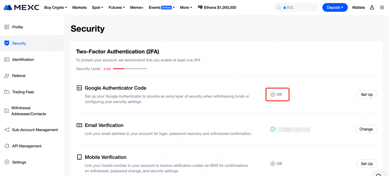 如果页面上显示的是灰色的【未设置】,说明您未成功绑定谷歌验证器,您需要点选右侧【设置】按钮按照步骤重新绑定谷歌验证器。详情请阅读:如何绑定谷歌验证器