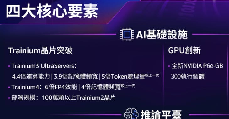 AWS 已經在研發下一代 Trainium4,預計將帶來更大幅度的效能提升。