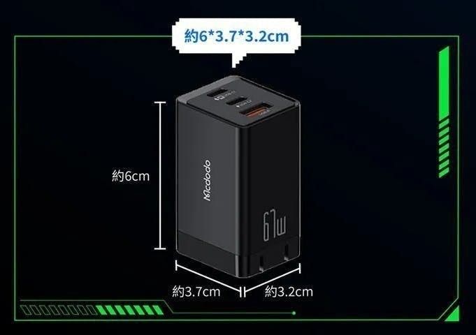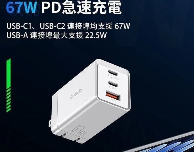 【Mcdodo 麥多多】67W GaN氮化鎵3孔快速充電器